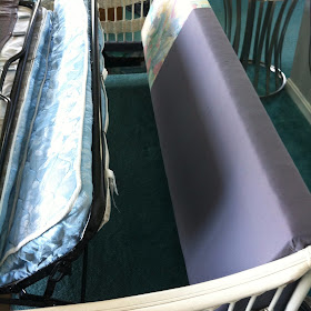 I attacked this project just like I was recovering a set of chairs, using some egg-crate mattress pads and left over fabric from the sofa makeover.